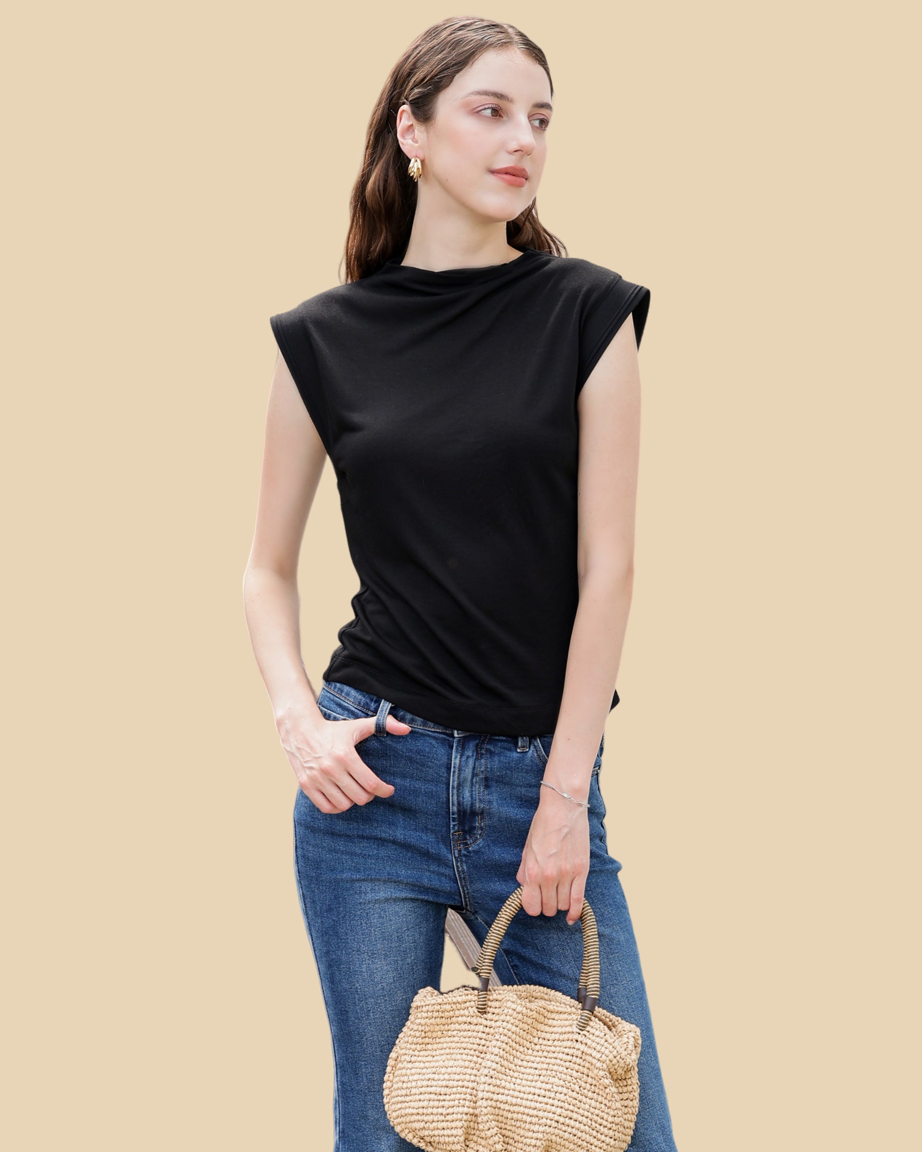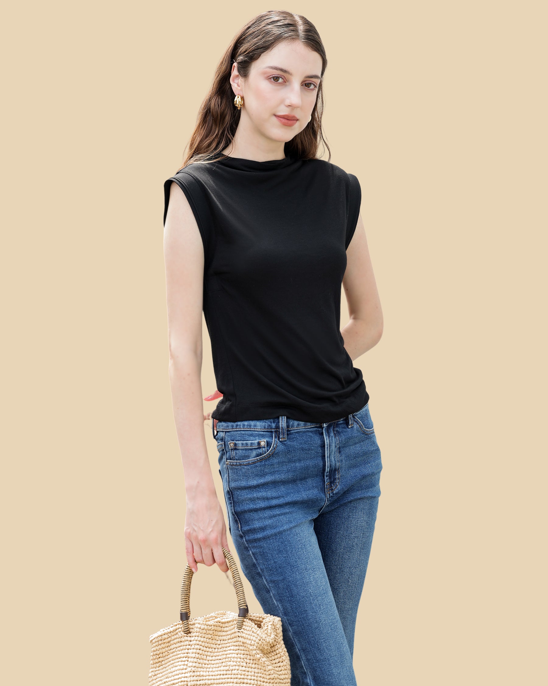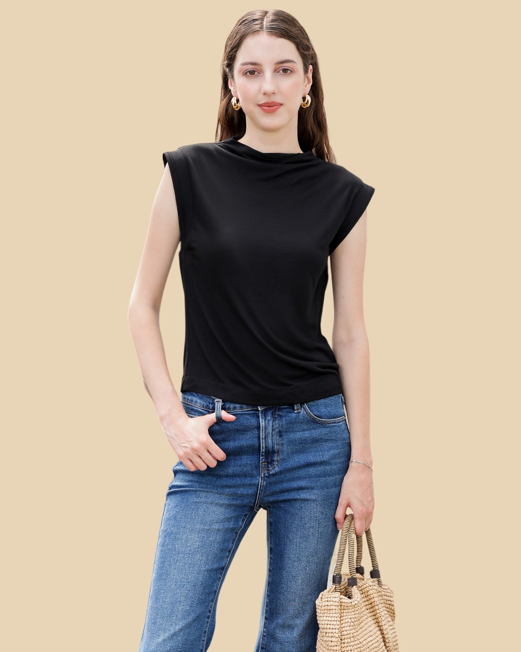 Modal-Silk Blend Mock Neck Ribbed Tee