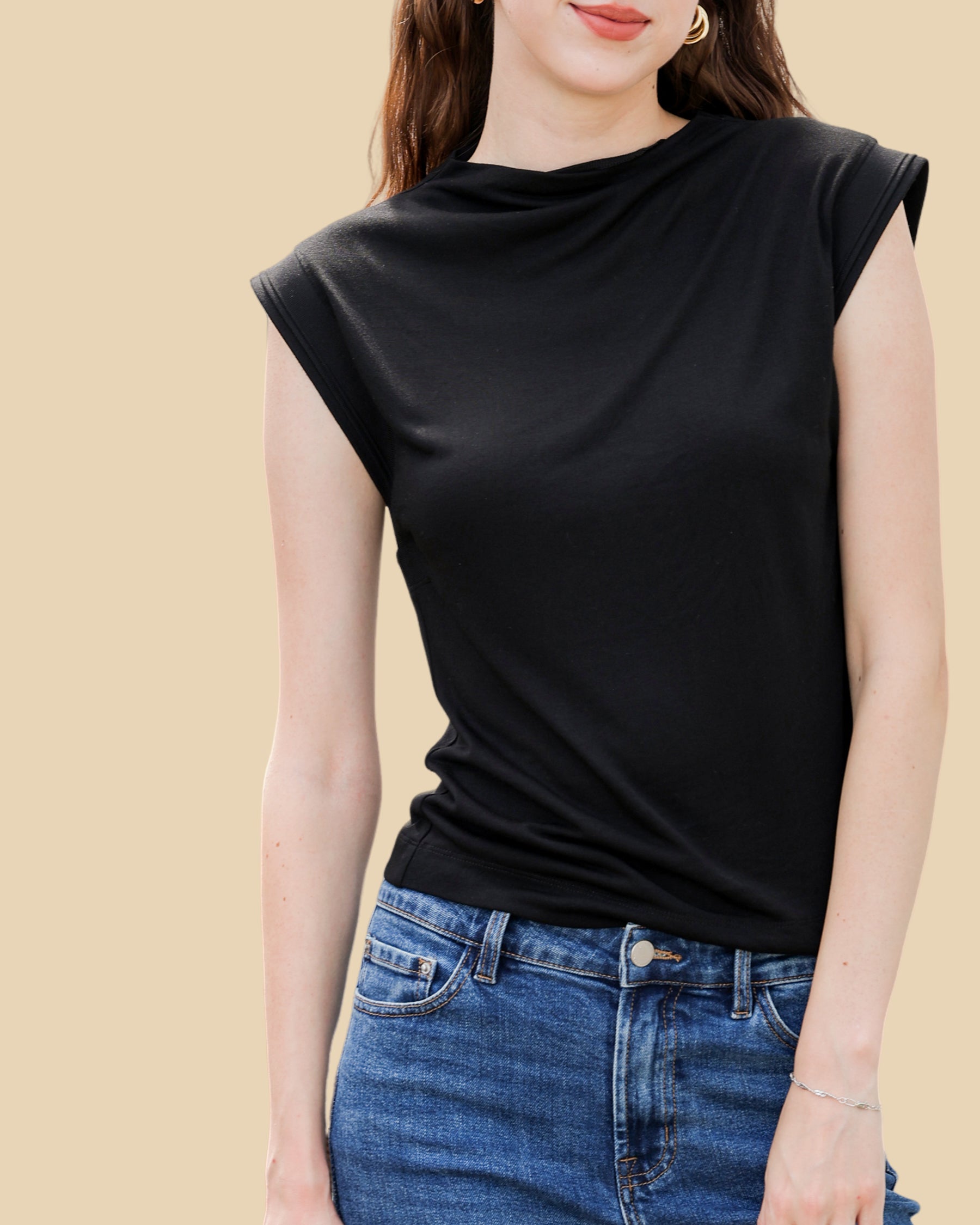 Pair with high-waisted trousers for a sharp office look or layer under a blazer for elevated weekend wear. Its versatile black hue and subtle sheen make it a closet essential for all seasons.