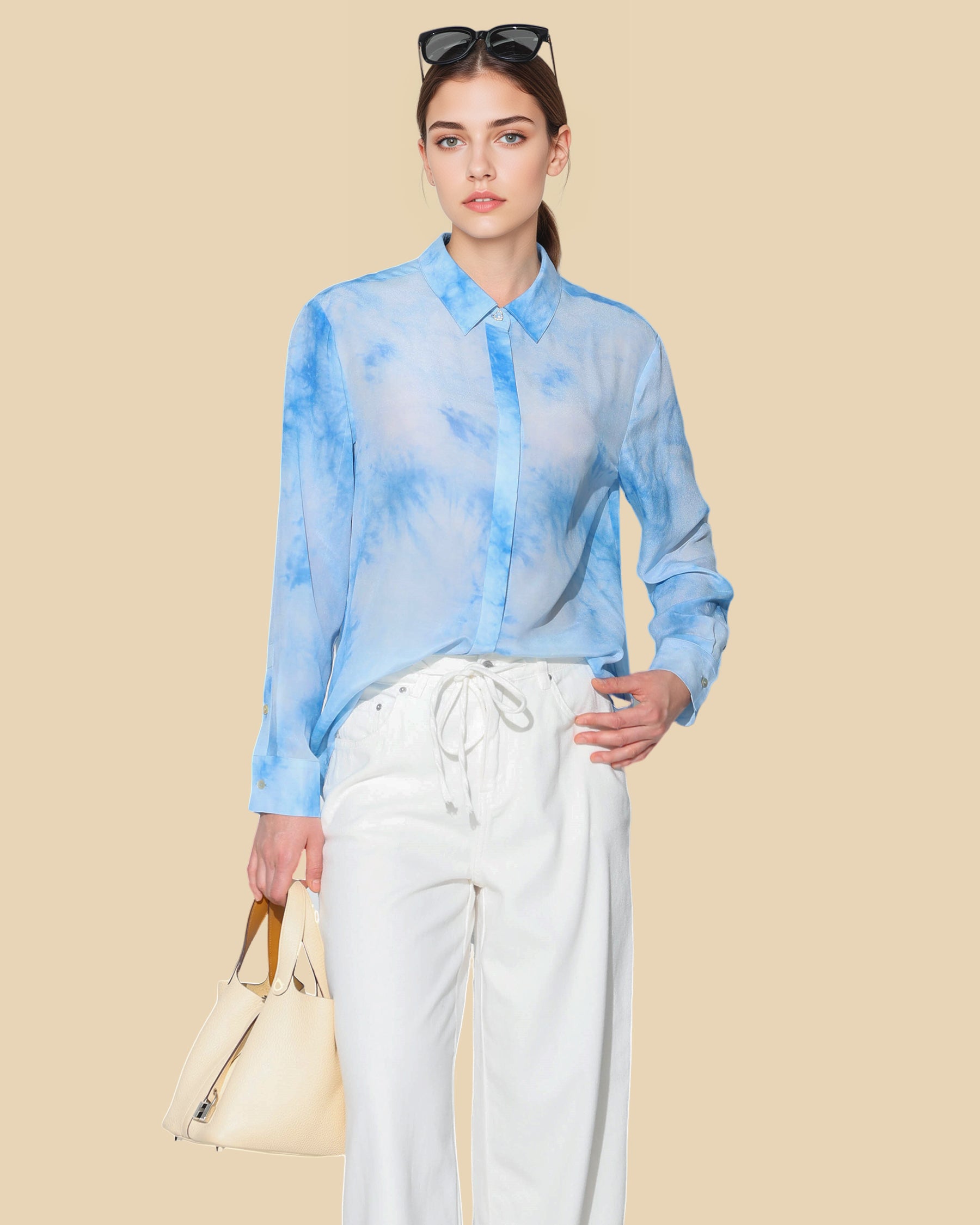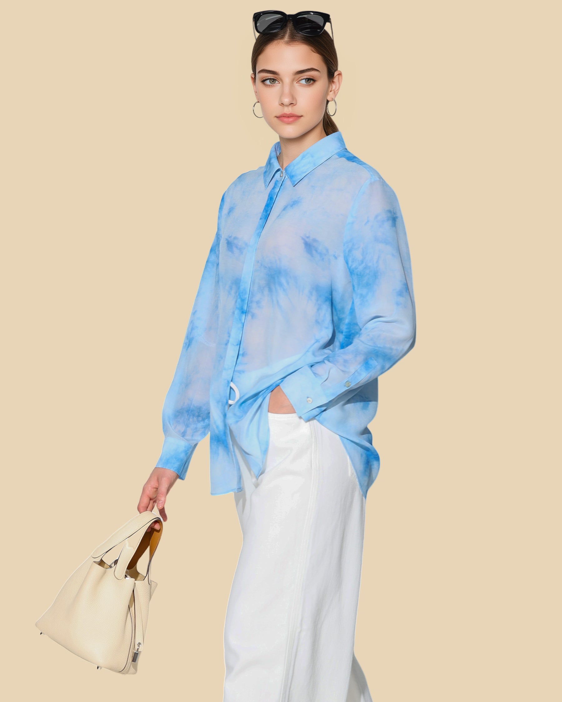 Sheer Silk Tie-Dye Shirt with Enamel-Glazed Buttons